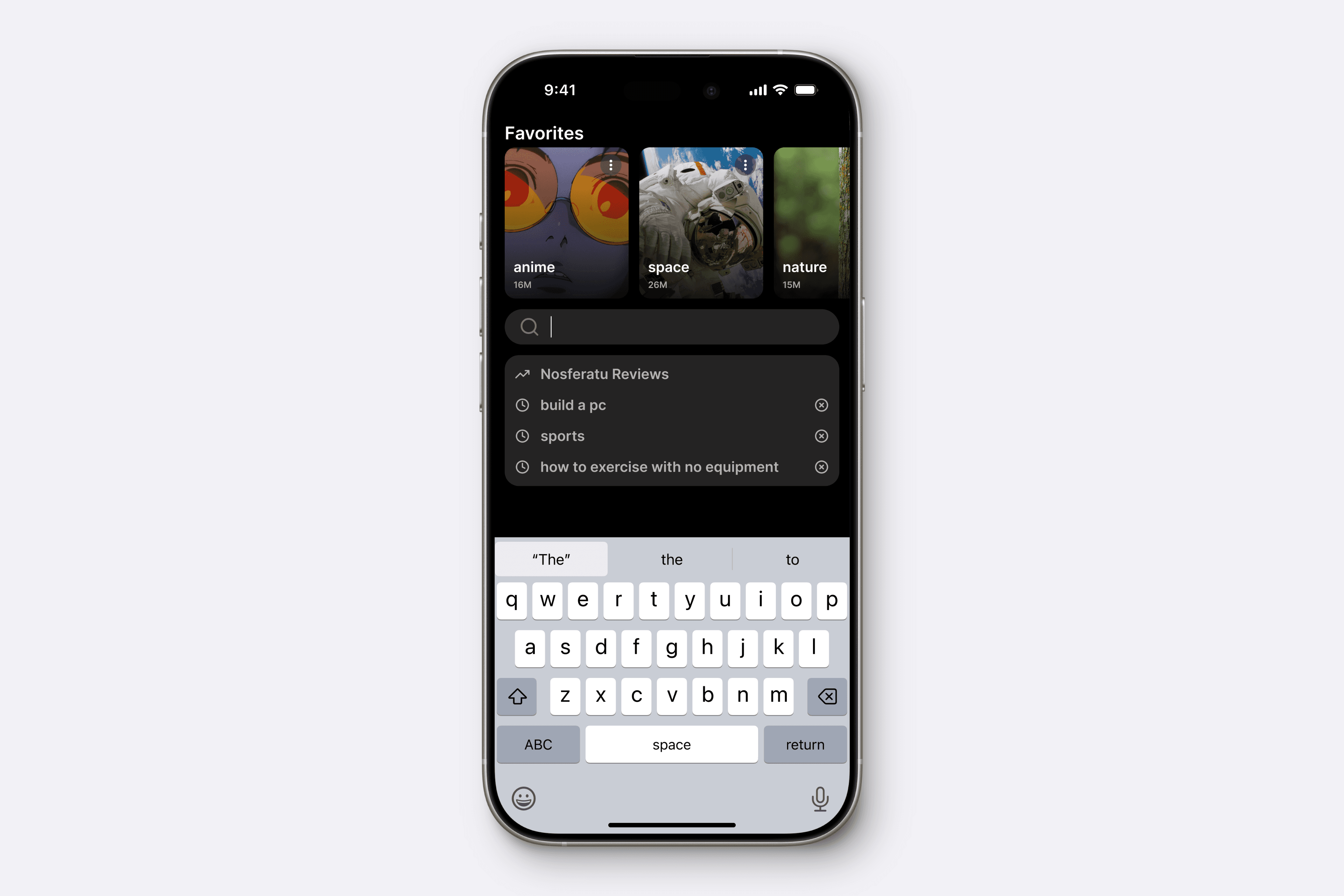 While the search function in reddit is used to make new queries, many users use this to return to their favorite subreddits. We incorporated this functionality into the search screen while preserving trending searches and search history.